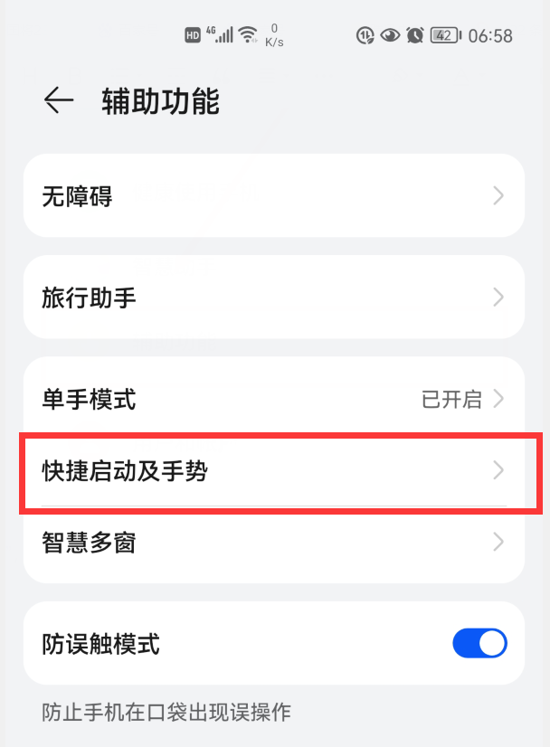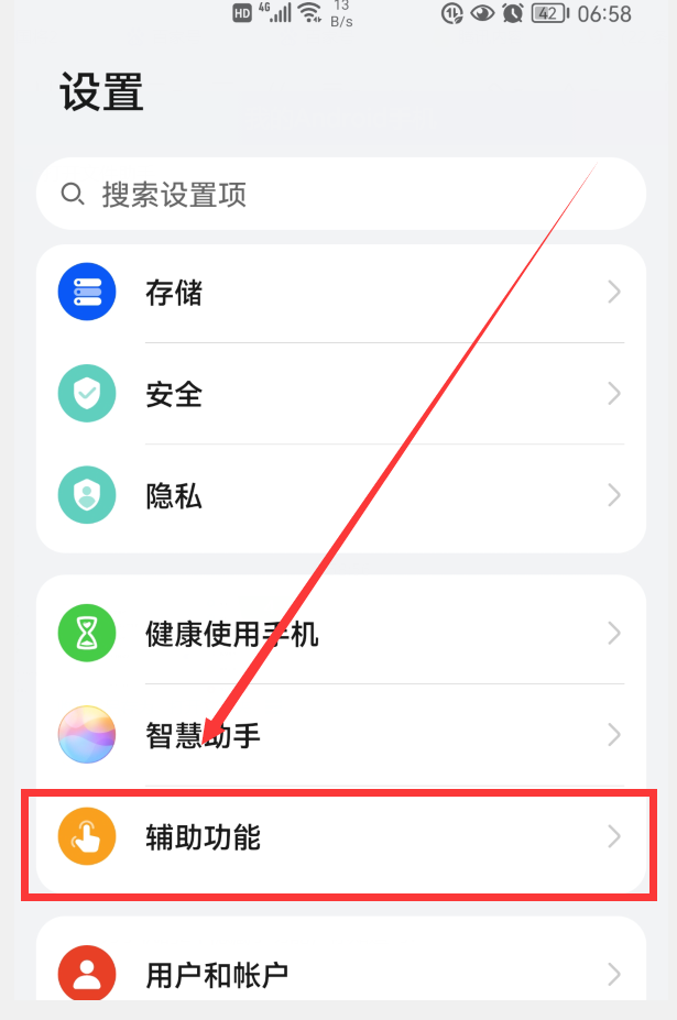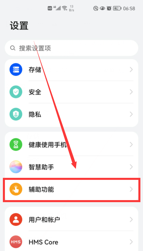 点击“辅助功能”,进入到“辅助功能”列表界面。