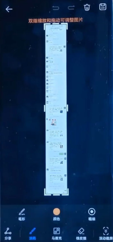 然后,我们点击底部的“分享”按钮,就可以把它分享到自己的微信好友或微信朋友圈里了。这个功能需要我们提前开启“指关节截屏”功能。打开手机的设置。