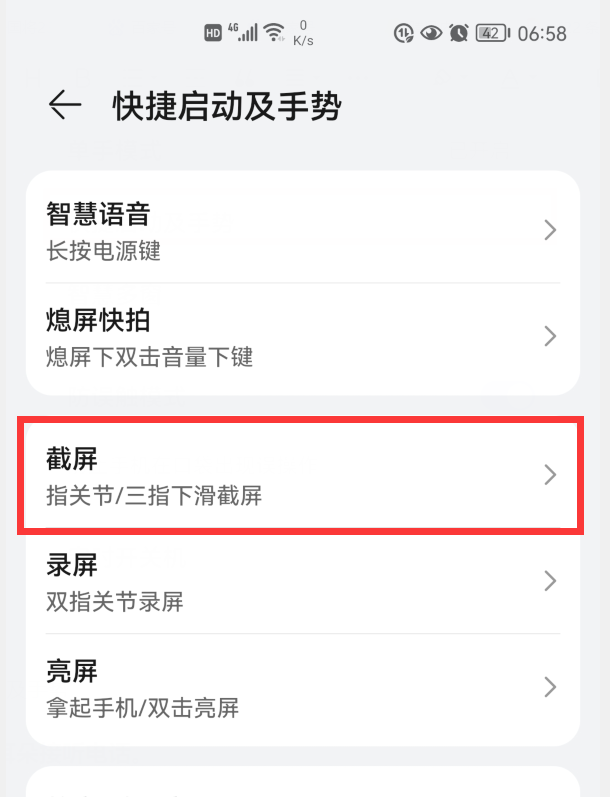 点击“指关节截屏”右侧的开关,把它变成蓝色,就表示开启成功,然后我们就可以通过指关节来滚动截屏了。