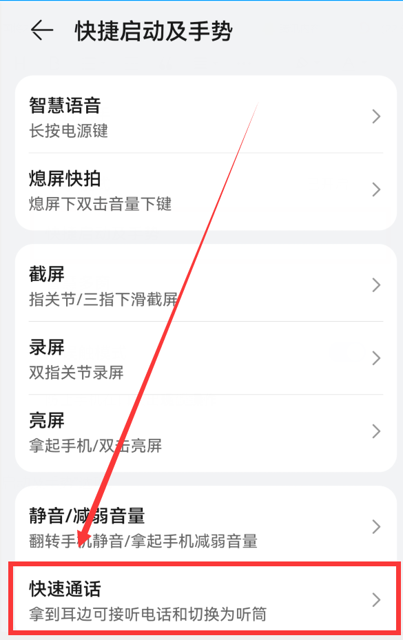 点击“快速通话”右侧的开关,把它变成蓝色,就开启了“快速通话”功能,然后,在手机来电的时候,只需把手机拿到耳边就可以接听电话了。
