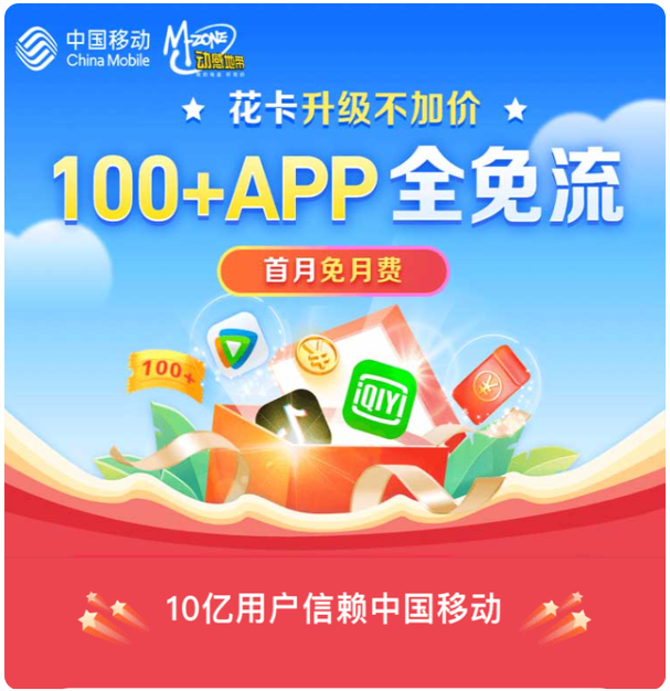 移动花卡宝藏版免费申请办理,100APP免流,全国亲情网4人互打免费
