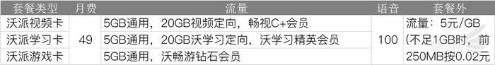 此外联通还针对自家产品,推出了定向免流的套餐,分别面向联通自家的视频、学习和游戏场景。