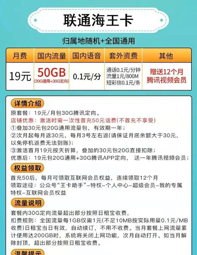 联通卡19元无限流量卡,真的有吗?联通19元无限流量卡是最近网上比较火热的一个话题,很多人都想知道这款卡到底是否存在,是否真的可以做到无限流量。