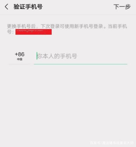 5、需要输入新的手机号码,然后点击右上角的下一步,进入到更换手机号流程指引页面。
